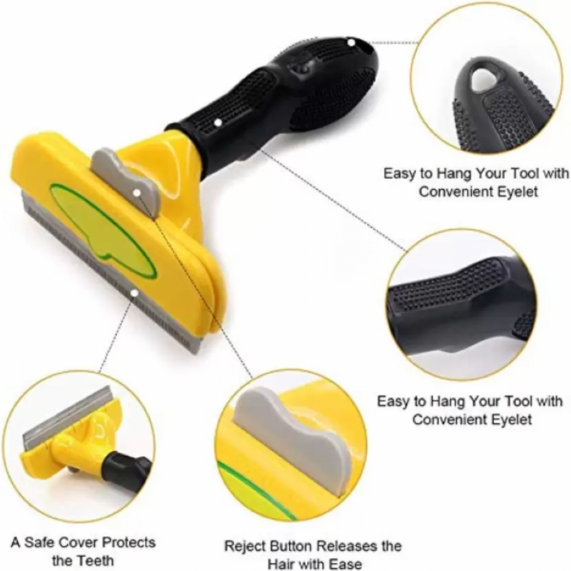 Created by pet grooming specialists, our de-shedding tool reduces shedding in dogs and cats, young and old, by up to 90%. Keep your home, furniture, and car free of unwanted fur with this effective grooming brush.