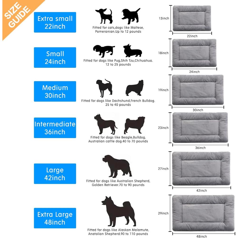 Size Guide: This dog bed is perfect for wire dog crates and measures about 48" x 30". It is suitable for dogs weighing 90 to 110 pounds, like Alaskan Malamutes or Anatolian Shepherds.