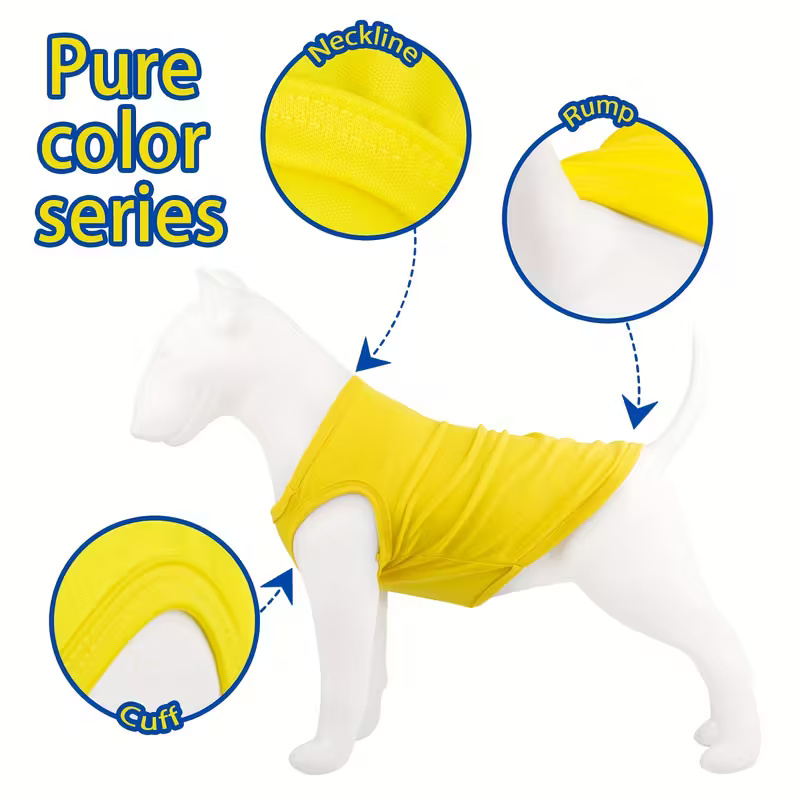 The Pack of 8 Comfortable and Soft Pullover T-Shirts for Dogs is a simple yet stylish addition to your dog’s wardrobe. Its comfort, ease of wear, and vibrant colors make it perfect for any occasion, from casual outings to everyday wear at home. This easy-to-care-for, airy shirt is designed to keep your dog cool, comfortable, whether indoors or out.