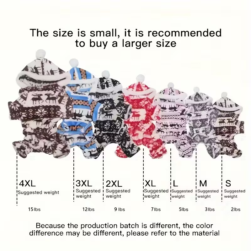 Designed with holiday gatherings in mind, the jumpsuit suits indoor celebrations, gift exchanges, and seasonal photos. Its cheerful pattern adds a festive touch while maintaining a simple structure that pets can wear comfortably during winter days.