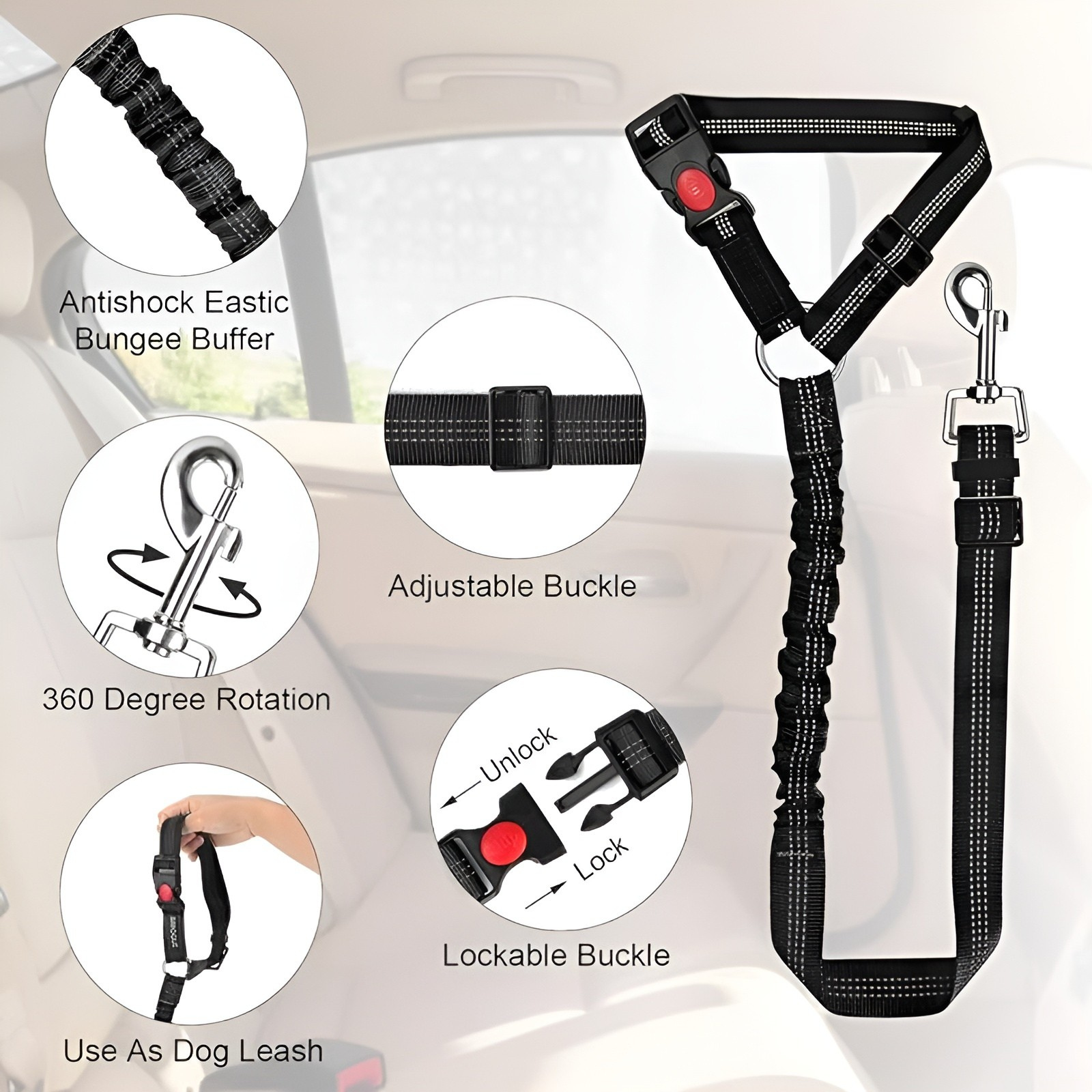 - Quick-Release Pet Belt Buckle: Enables easy and fast installation or removal of the seatbelt.