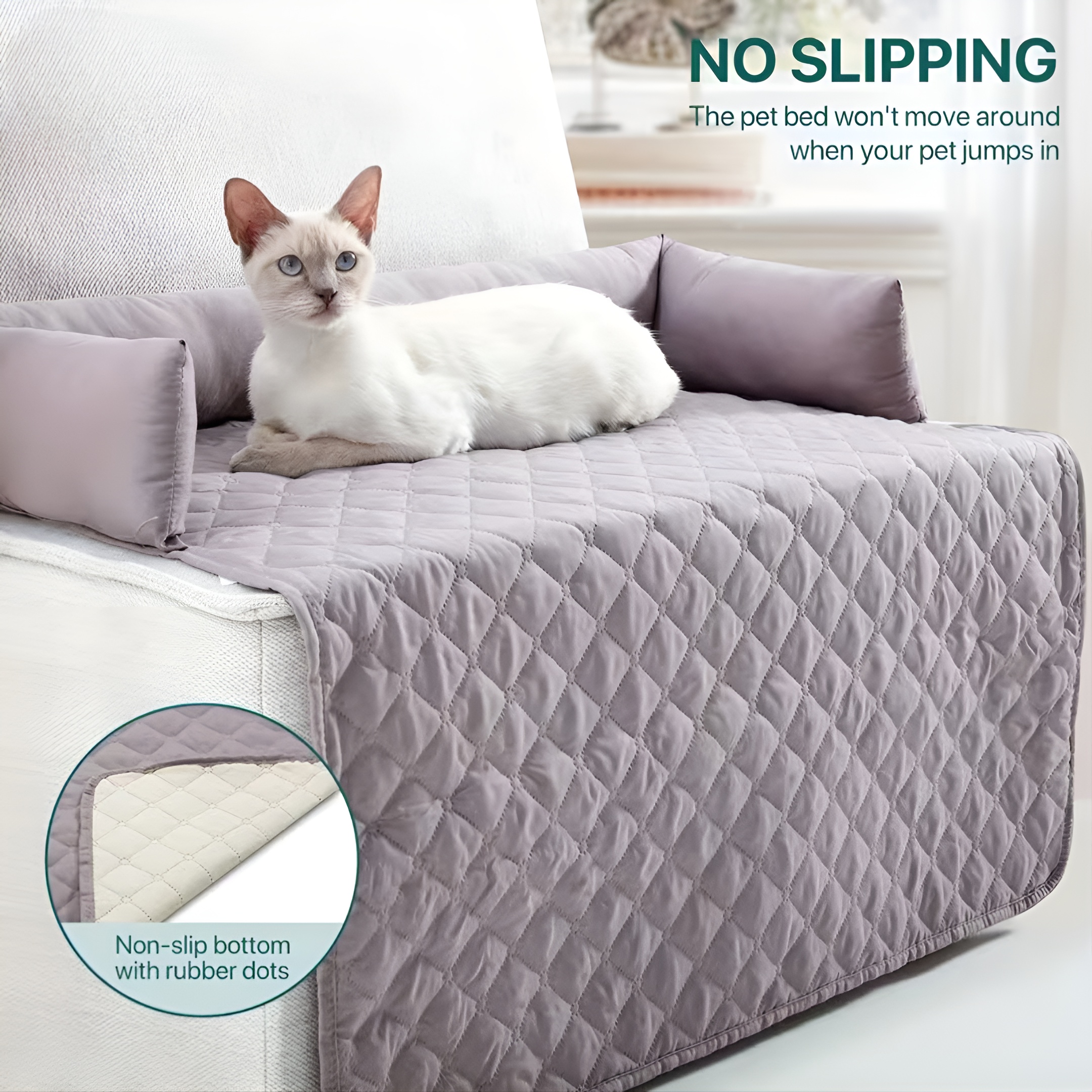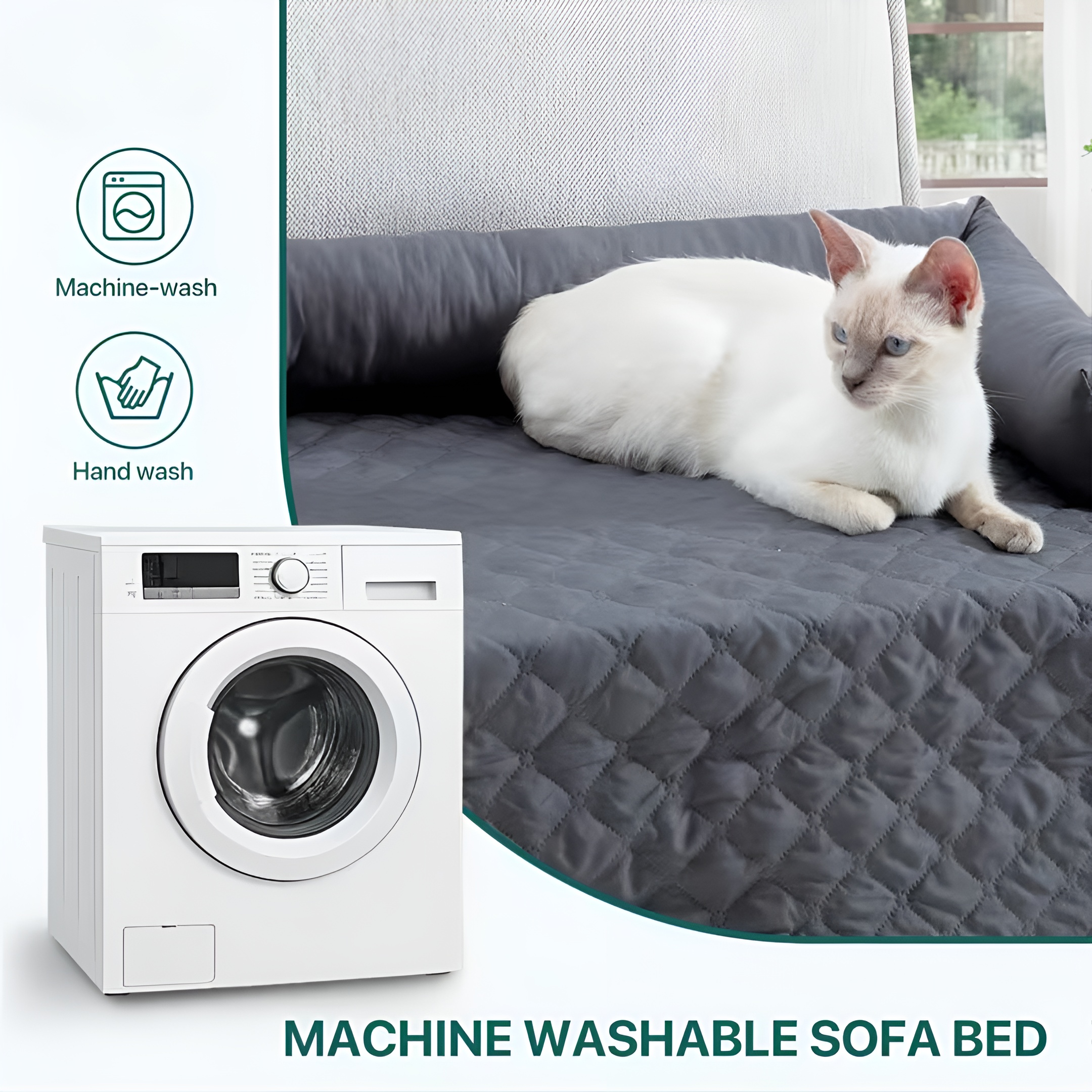 Give your furry friend the comfort they deserve with this Washable Dog Sofa Bed With Bolster Cushions. Designed to fit small to large dogs and cats, this slip-resistant, washable couch protector features cozy bolster cushions for added support. Whether your pet is wearing or taking a nap, this Washable Dog Sofa Bed With Bolster Cushions is the perfect addition to your living space.